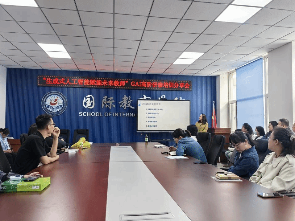 为积极应对教育数字化转型,把握人工智能时代机遇,2025年9月24日,国际教育学院举办“生成式人工智能赋能未来教师”学习分享会。会议由李娟院长主持,学院领导班子、学校教师教学发展中心李孝更老师及全院教职工参加。本次分享会源于学校为青年教师提供的学习机会。9月19日至21日,学院选派孟鑫、尚若璇两位青年教师赴华南师范大学参加“生成式人工智能赋能未来教师”为期三天的高级研修班。